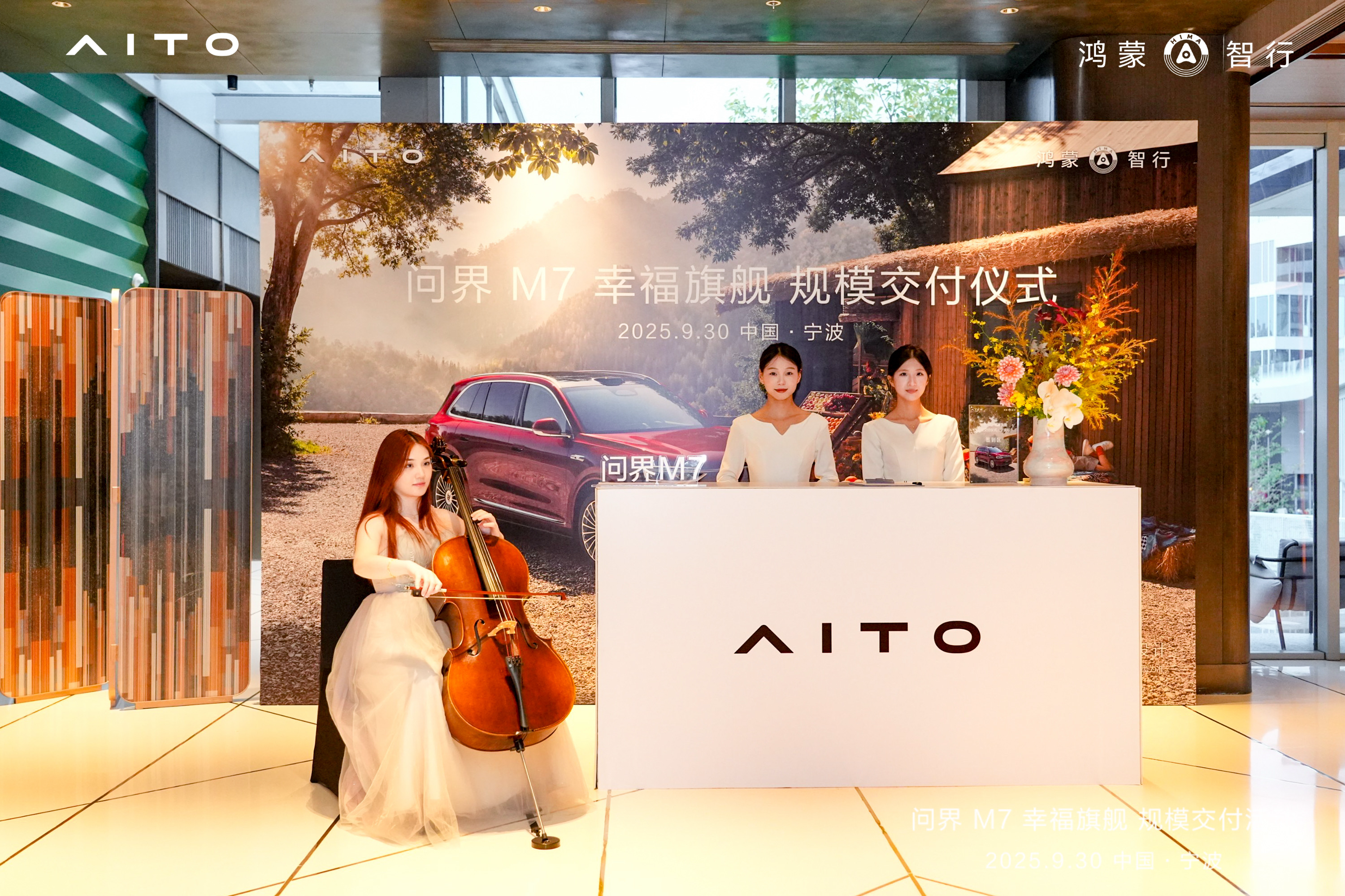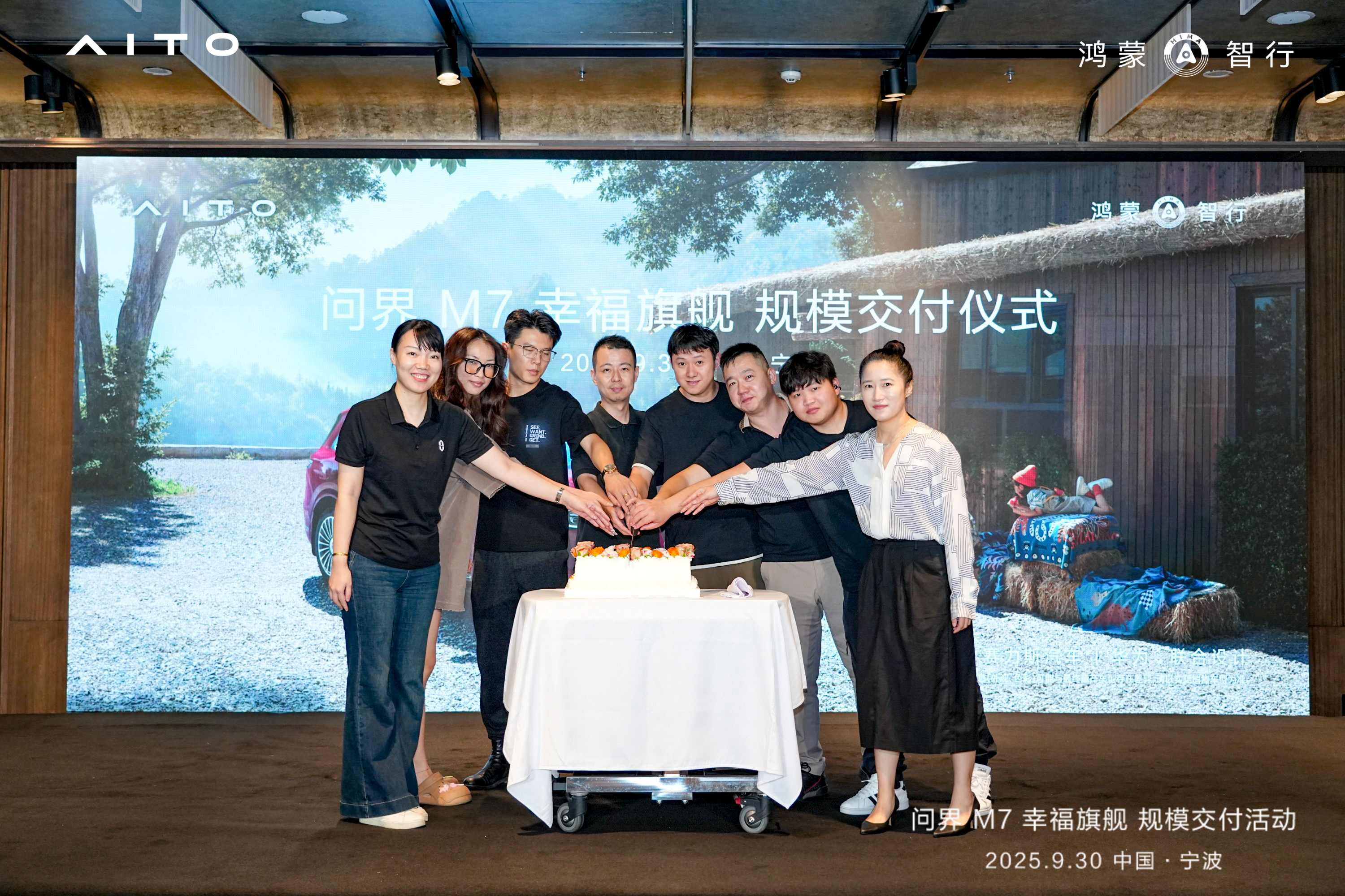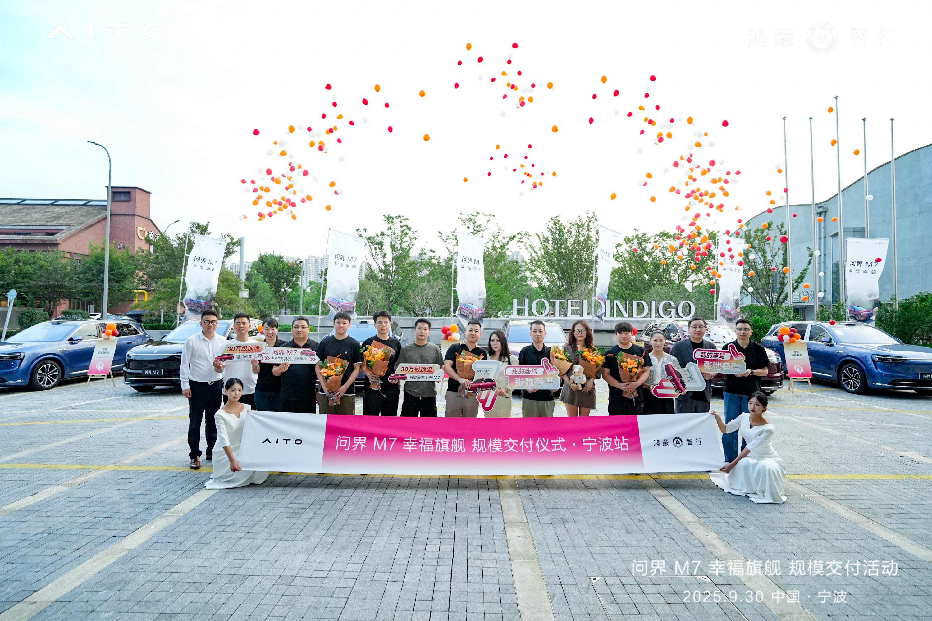 2025年9月30日,全新问界M7宁波区域规模交付仪式在宁波文创港英迪格酒店盛大举行。新晋车主、媒体嘉宾与品牌代表齐聚一堂,在优雅的氛围中共同见证新车交付的高光时刻,这场融合仪式感与体验感的活动,标志着这款"幸福旗舰"SUV正式驶入甬城用户的生活。